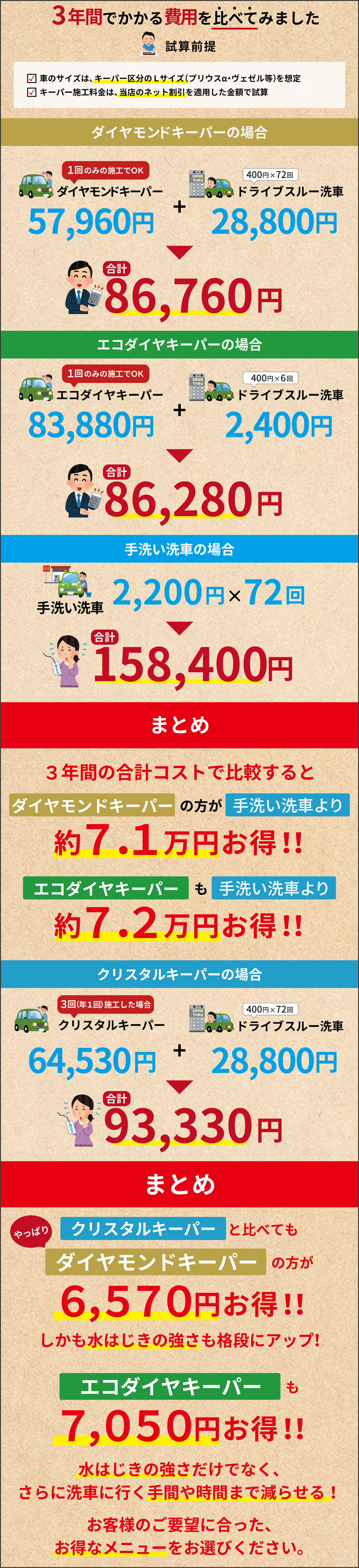 カーディーラーや車販売店のコーティング料金より断然お得!