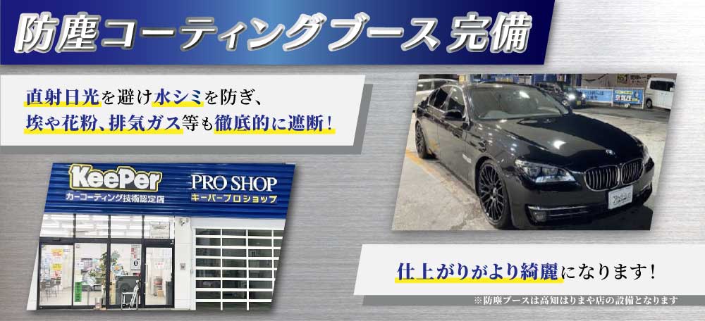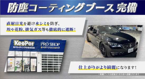 当社は専用の防塵コーティングブースを完備しており、細かい埃や日光を遮断した環境下で作業を実施いたします!
