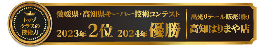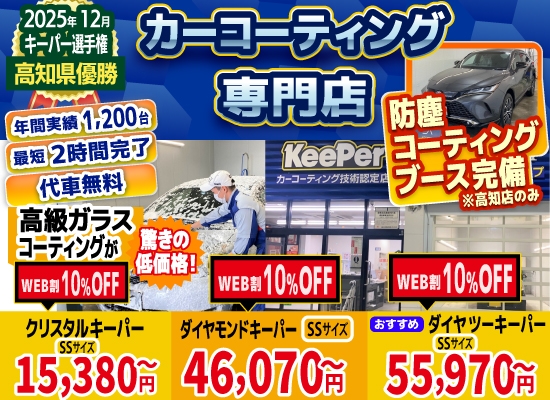 また、コーティング施工はキーパーコーティングの技術資格を持ったスタッフが行います! 高知はりまや店には、キーパーコーティング技術1級資格者2名が在籍しております。