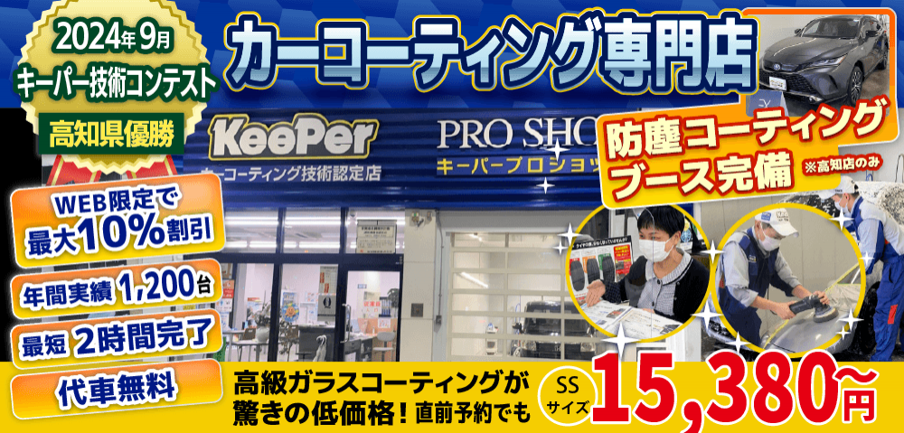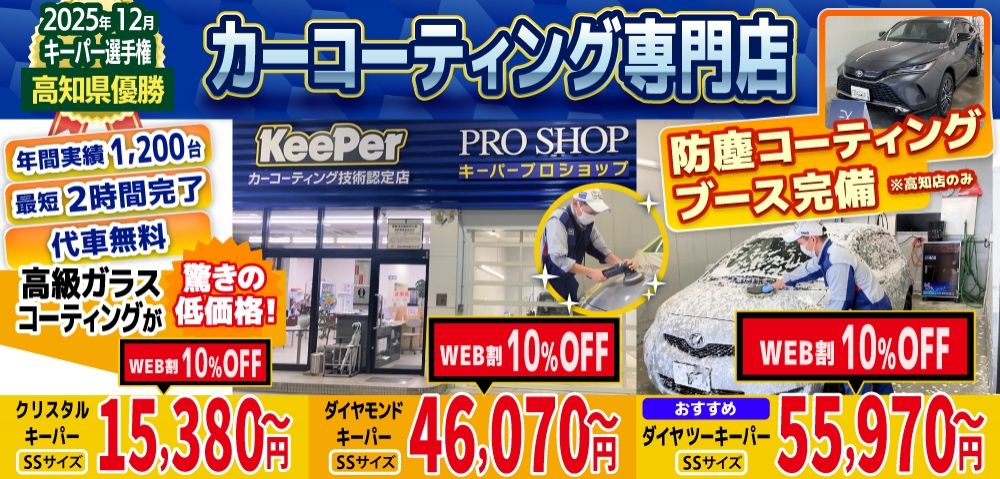 私達キーパープロショップは、高知市・四万十市・南国市・香南市・いの町・香美市・土佐市エリアのカーコーティング専門店として、日本ダントツのカーコーティングブランド、キーパープロショップとして認定を受けております!