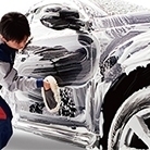 コーティング車でも安心、ムース(泡)洗車で透明な仕上がり。