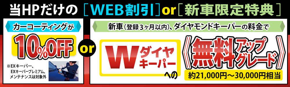 | 特徴 | ダイヤモンドキーパーのボディへの施工に加えて、さらに、ガラスコーティングを下記の「施工箇所」に施工いたします! |